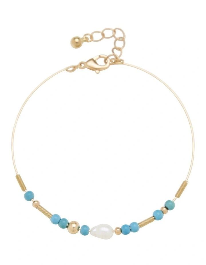 Marcs captures spirited design, colour and vibrant character creating timeless classics and expressive statement pieces to add individuality and confidence to both work and weekend. Bring a subtly stylish finish to your spring and summer style with the Bead and Pearl Threaded Bracelet. This dainty bracelet features a fine gold-coloured band, with blue bead details and a glossy faux pearl feature bead.
