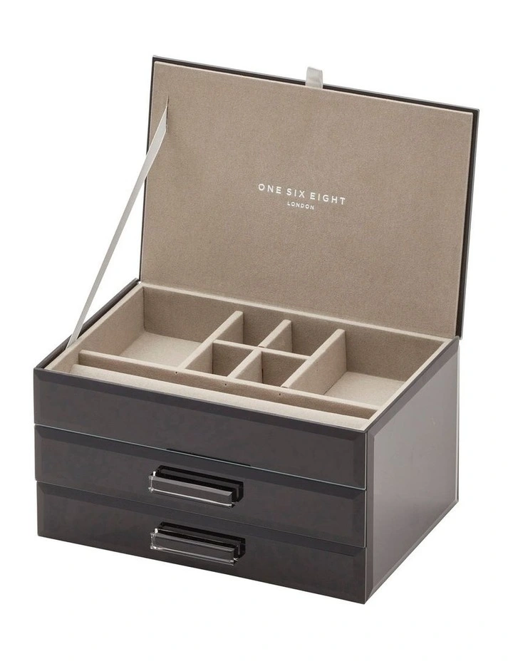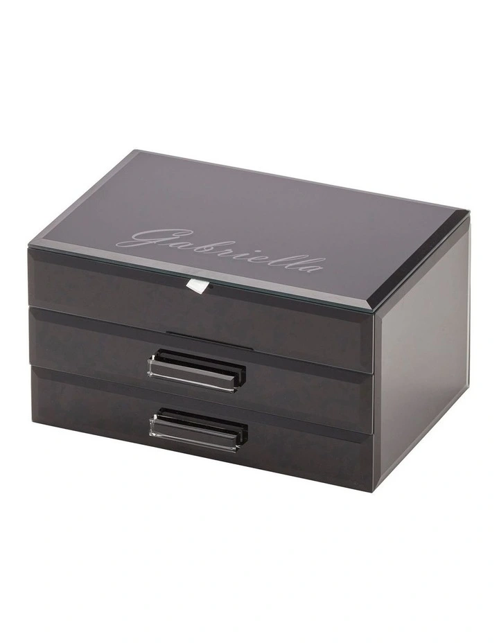 Functionality meets fabulous style with this glass jewellery box. It features three tiers: one compartmentalised top section plus two removable drawers, so there’s plenty of room for rings, earrings, bracelets and necklaces. Every item will be safely stored, neatly arranged and set against tactile velvet to protect it from scratches. The glass box will glisten in the light to bring an air of vintage glamour to your vanity table. What more could a girl want?