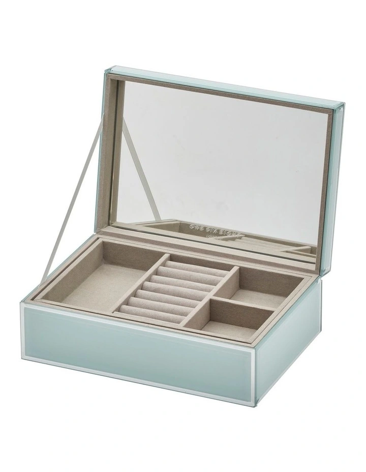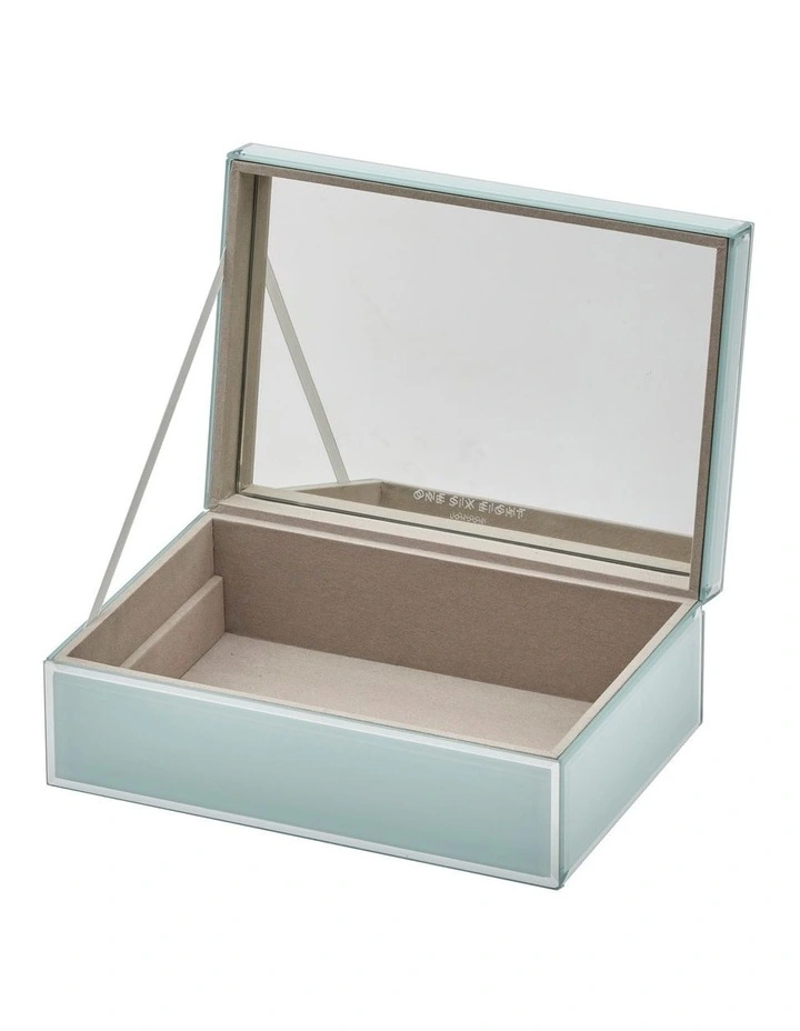 This elegant glass jewellery box combines old-school glamour with on-trend colour. It’s a roomy treasure chest with myriad sections and a handy removable tray. It’s also the perfect jewellery box for the modern socialite the mirror in the lid allows you to check your accessories are on-point before you leave the house. The glass has a lustrous finish with stylish bevelled edges and shimmering metallic trim for that extra touch of luxury.