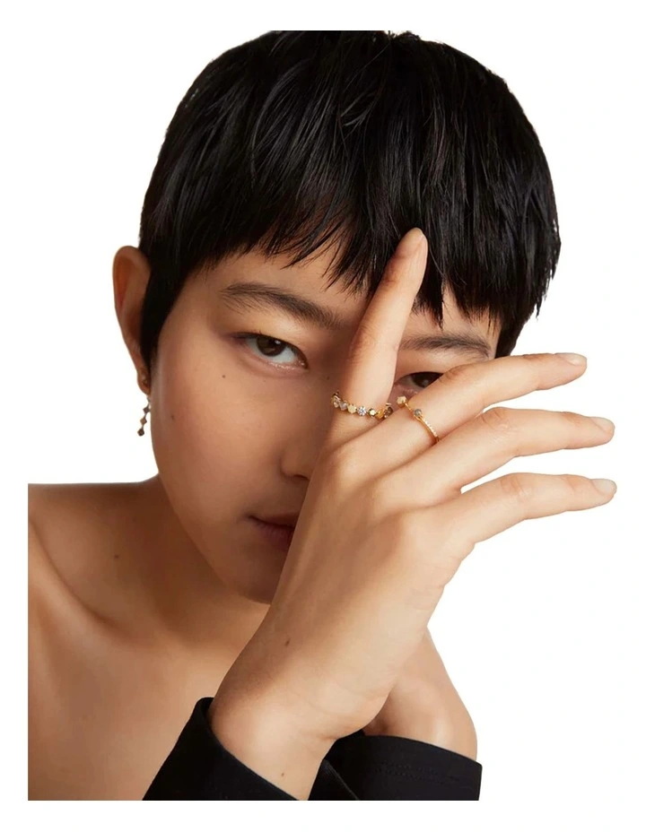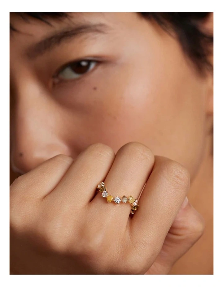 Fabrication: Material: 925 Sterling Silver Finishing: 18K Gold Plating Stones: Labradorite Light Green Iced Zirconia Yellow Iced Zirconia Green Zirconia White Zirconia Stones Diameter: 3 Mm Weight: 2.05 G