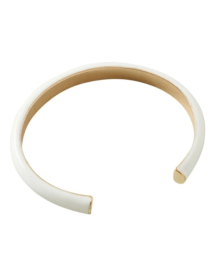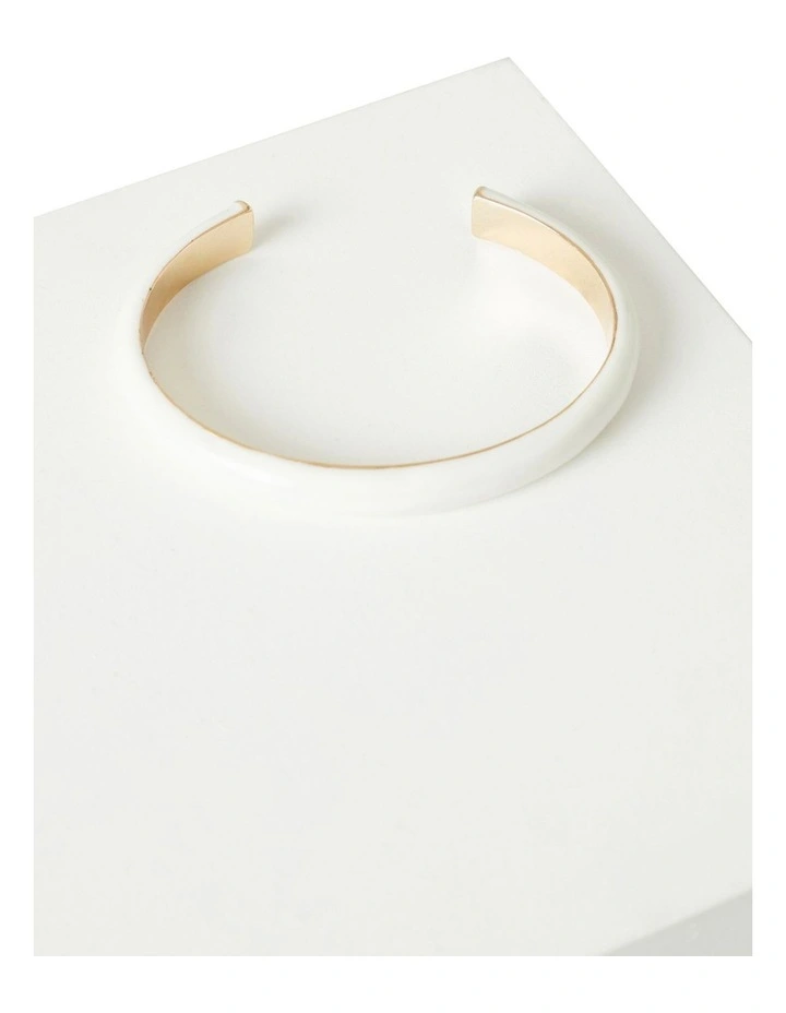 Coated in a chic oat coloured enamel on the outer, this minimally designed cuff is an easy to wear accessory and an essential to any collection. With an open design, the style is crafted from a quality gold alloy that will add a hint of modern sophistication to any look.
