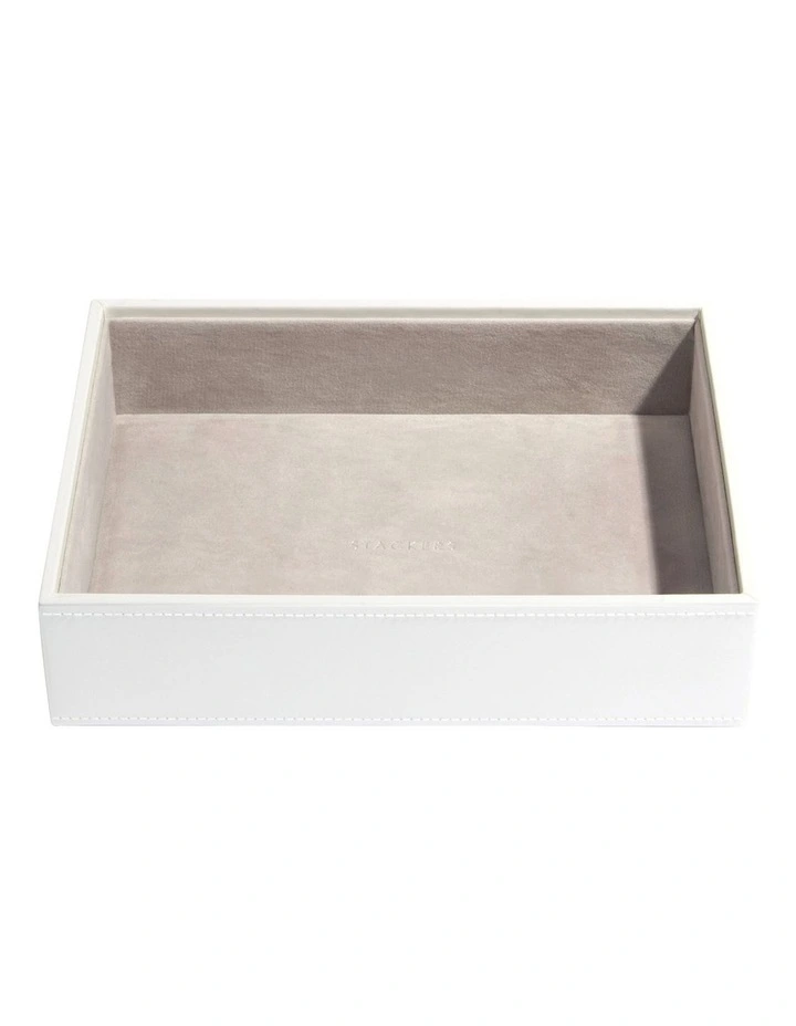 Stackers jewellery boxes are designed so you can create your own by choosing which layers and accessories best suit your unique collection. The White Classic Chunky Jewellery Layer is made with Vegan Leather & Velvet Simple yet practical. Add this layer for all those larger jewellery items and accessories. Size: 250x180x60mm